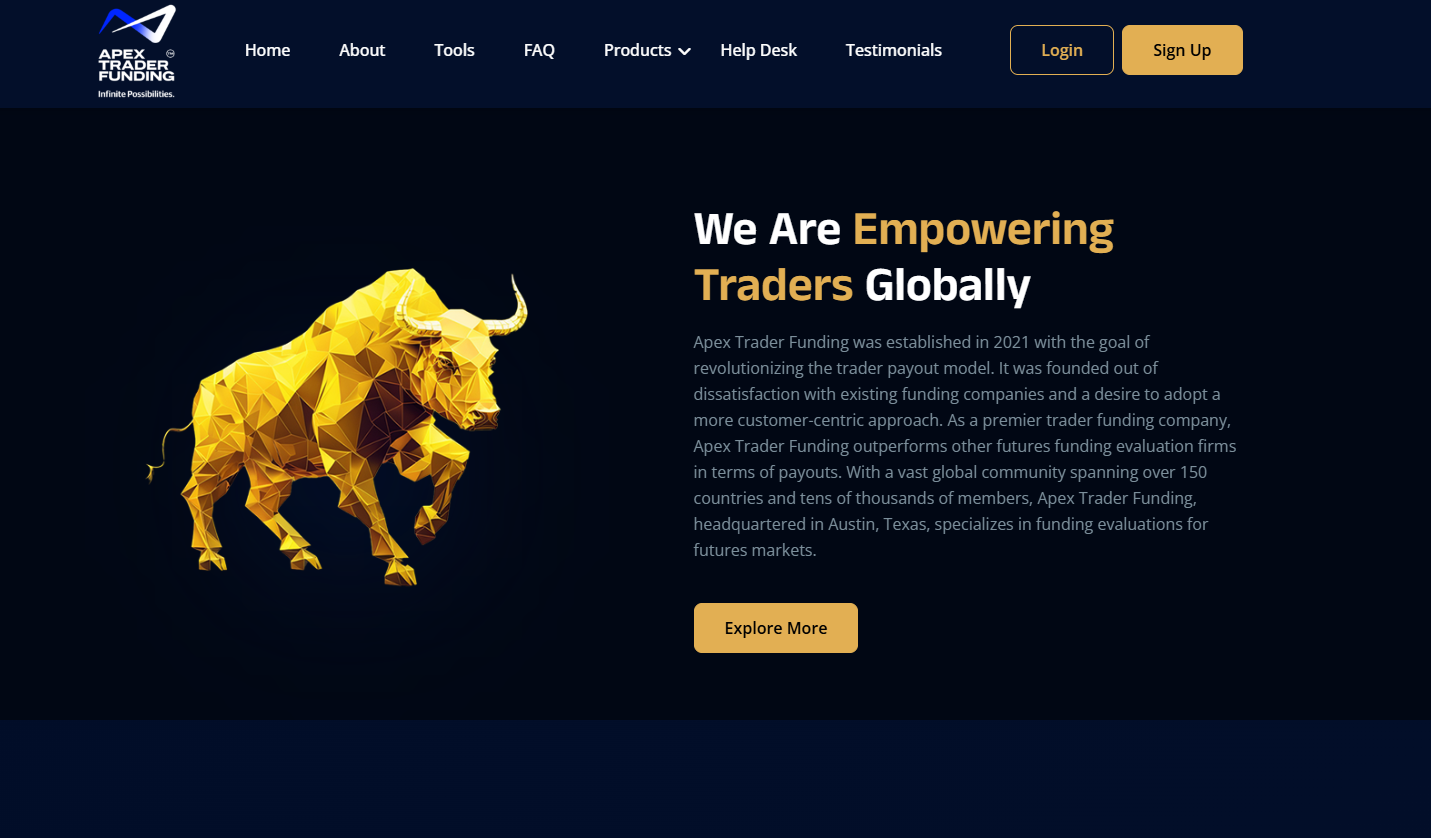 Apex Trader Funding entered the futures prop trading firms market in 2021 and has paid out over $500 million to traders since then. The firm built its reputation on a one-step evaluation and claims to pay out more than any other futures funding evaluation firm. Account sizes range from $25,000 to $300,000. Both Rithmic and Tradovate platform options are available to US traders.